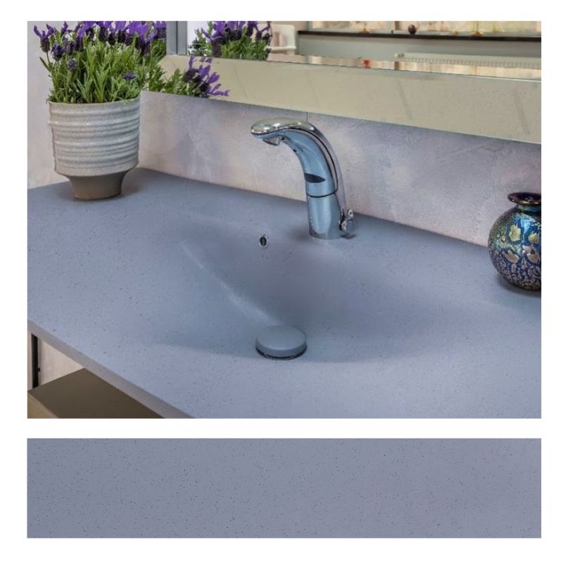 - Descriere: Concept baie format din mobilier baie Caraibe și lavoar Uniq Granulon Mat Stella. Lavoar Kuma, cu bol Uniq pozitonat simetric, cu gaura de baterie, avand grosimea de 2.2 cm, acesta fiind construit din granulon mat Stella.